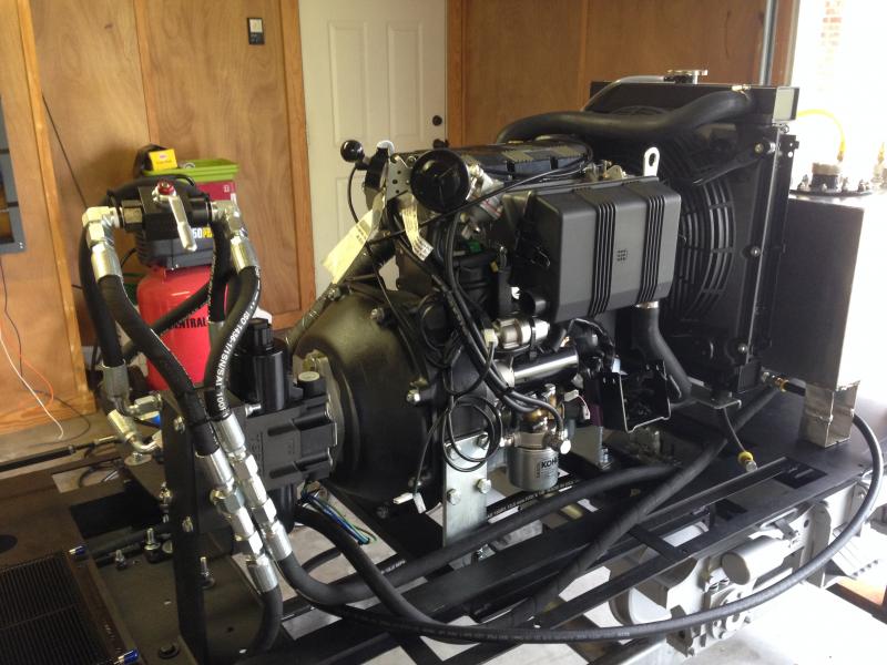 3 cylinder Liquid Cooled Kohler Diesel, commercial piston pump, Char Lynn hydraulic motors, and 4140 steel wheels are optional.
