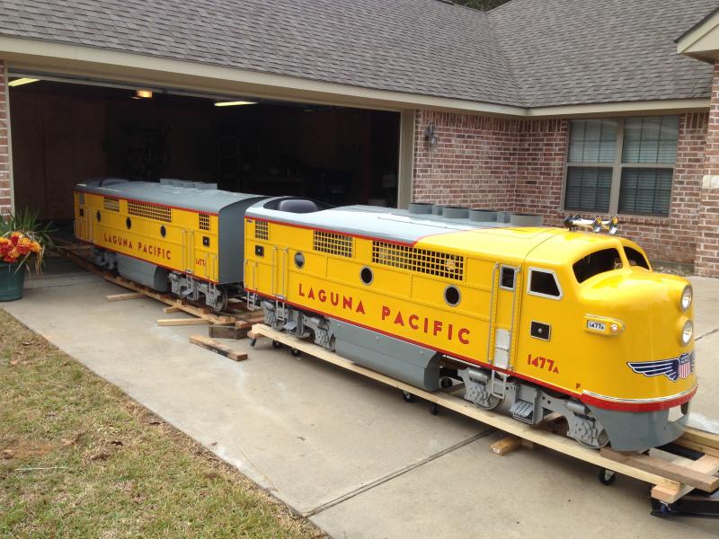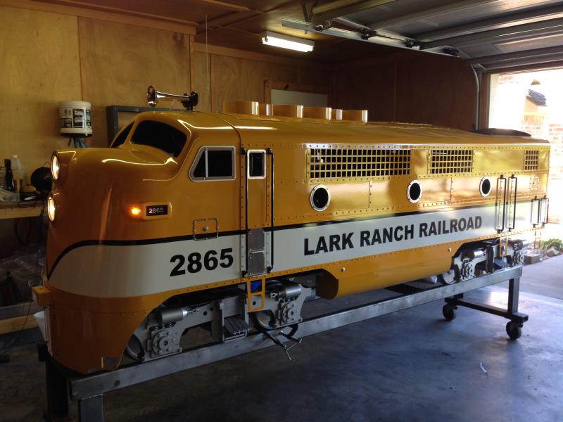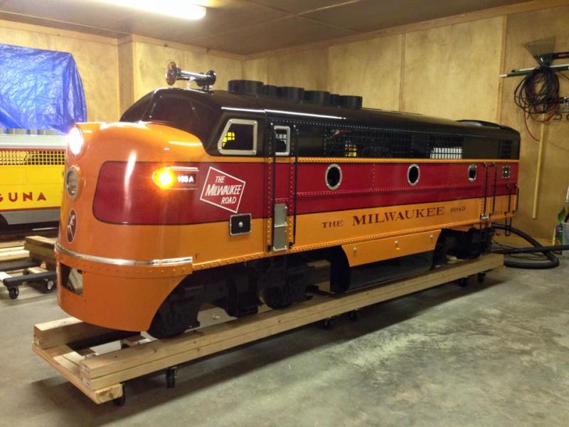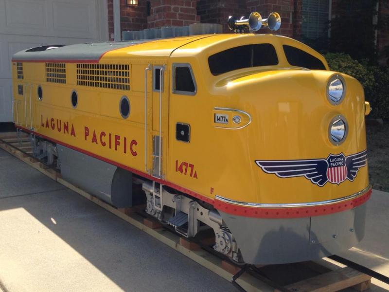 This all around great looking locomotive is now standard practice at the Swannee River Railroad Co! The F Unit has many details including the low profile passenger pilot and buffer that doubles as a coupler pocket. The pilot plate also features rivet details and chrome trim. Other features include layered cab side windows and port holes for a 3-D look, lighted number boards, grab irons, stainless steel and aluminum trim is also included. The body is laser cut from rigid 12G Steel. This thick steel body gives the locomotive a solid appearance not to mention the added weight for plenty of traction. This is one great looking locomotive! Photos do not do justice to all the small details! The Swannee River F Unit is powered by a 1028cc Kohler 3 cylinder overhead cam liquid cooled diesel engine. This proven, high performance diesel engine utilizes indirect injection that delivers smooth power and reduced combustion noise. The automotive overhead camshaft design also reduces mechanical drivetrain noise. This sturdy engine is coupled to a commercial grade piston pump with oil cooler and Danfoss motors. Heavy Duty Trucks with 1.5" thick side frames are standard as well. This is by far the most cost efficient grand scale locomotive available market. Locomotives are built with brand new parts and painted to in up to 3 colors in a standard pattern (specialty patterns, paint colors or brands can be discussed for an additional cost).