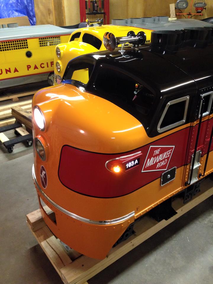Other standard Features- Here at Swannee River, we want your train to be ready to go once it is delivered. That means put it on the track and go! Our units come RTG-That is ready to go. Your unit will come with many standard features such as dual front headlights, air horn for safety, paint and lettering. when it arrives. All other details such as ladders, grab irons, and lighted number boards are standard.